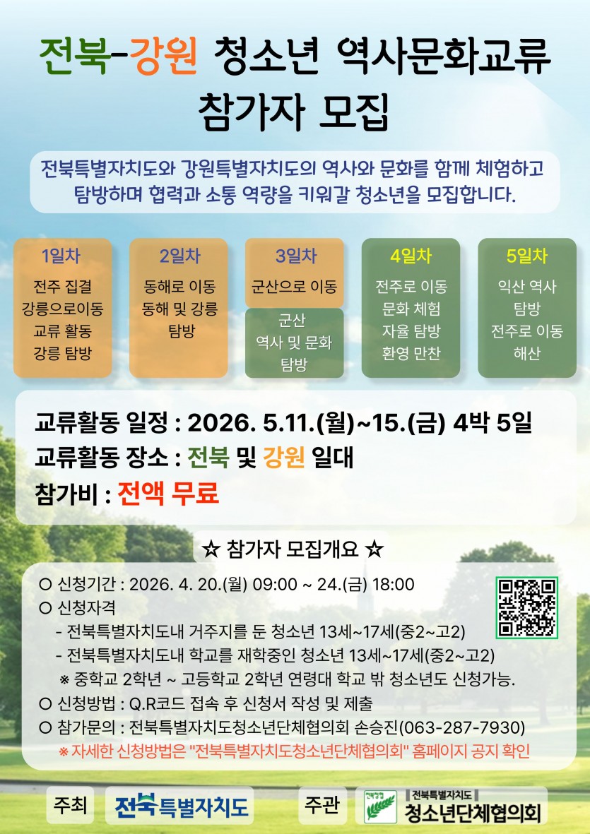 [전북청협 공고 제2026-3호] 전북-강원 청소년 역사문화교류 참가자 모집